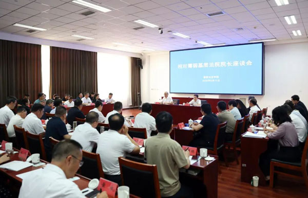 39名到國家法官學院學習培訓的薄弱院院長參加座談。攝影:孫若豐