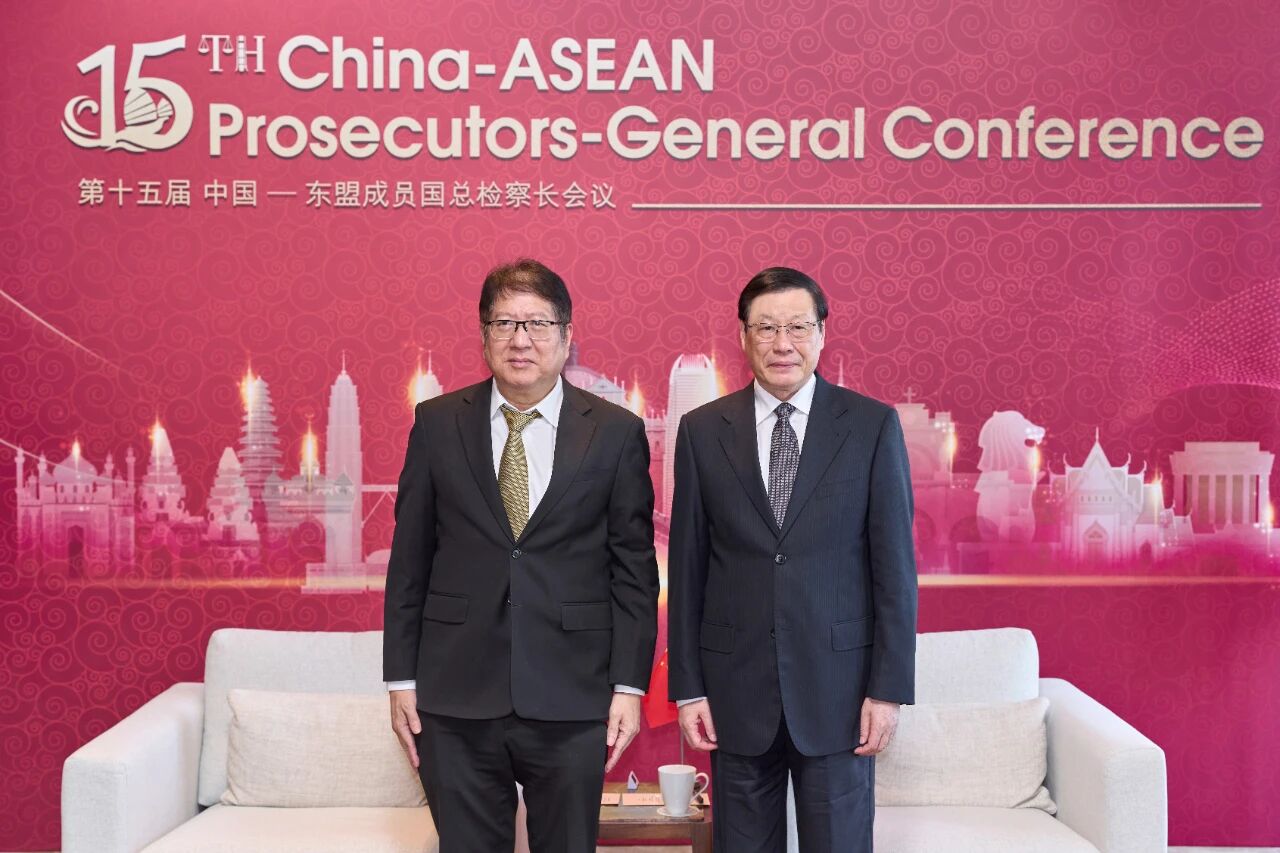 9月22日,中華人民共和國首席大檢察官、最高人民檢察院檢察長應(yīng)勇在香港特別行政區(qū)分別會見出席第十五屆中國—東盟成員國總檢察長會議的文萊總檢察長諾·哈希瑪、柬埔寨總檢察長謝梁、馬來西亞總檢察長莫哈末杜蘇基、緬甸總檢察長迪達(dá)烏、菲律賓總檢察長法杜隆、新加坡總檢察長黃魯勝、泰國總檢察長派叻及印度尼西亞副總檢察長納倫德拉·賈特納、老撾最高檢副檢察長彭坦·邦塔亞、越南最高檢副檢察長陳海軍。