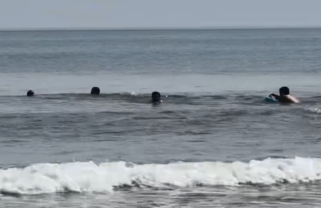 謝清游了大概三十多米,才發(fā)現(xiàn)水里有兩個溺水兒童,“一個還在水面掙扎,另一個情況更嚴重,他臉色發(fā)紫,看上去失去意識了?!敝x清將失去意識的男童推了幾步,旁邊一個拿著游泳圈游過來的男子接過男童并用泳圈套住。同一時間,羅銀也將下水救援但已體力不支的那位父親拖到泳圈處,與男童一并往岸邊送。在近海灘的位置,鄧俊德下水接應,合力將溺水者托舉上岸。