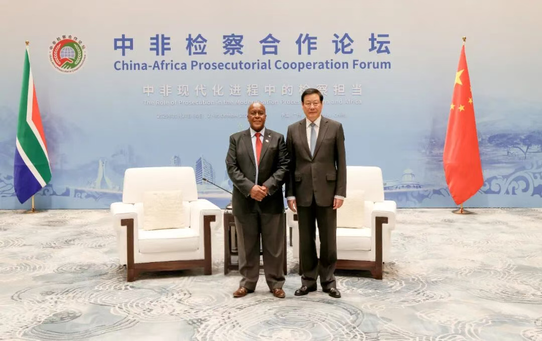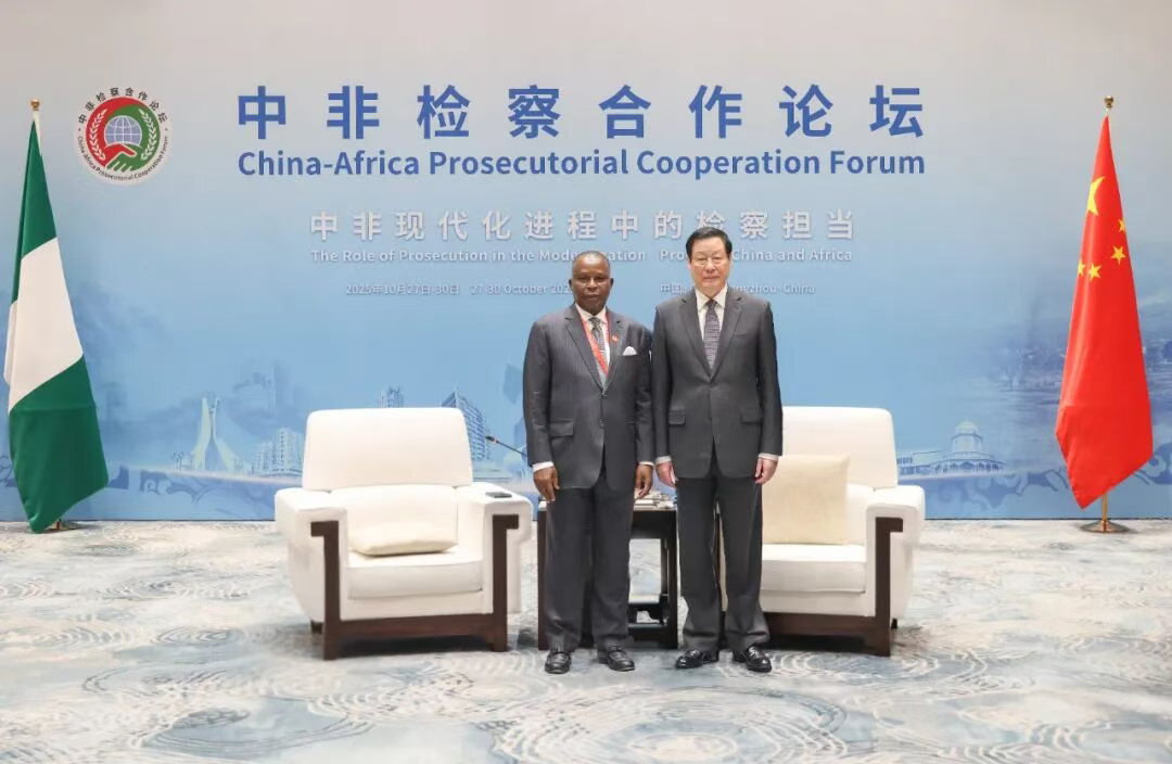 應勇介紹了中國法治建設、檢察工作有關情況。他說,全面依法治國是中國的憲法原則和中國共產黨治國理政的基本方略。中國檢察機關作為國家的法律監督機關和保障國家法律統一正確實施的司法機關,正在中國共產黨領導下,認真落實中共二十大和二十屆歷次全會精神,依法履行法律監督職責,持續推進習近平法治思想的檢察實踐,努力以檢察工作高質量發展支撐和服務中國式現代化。中國檢察機關愿與非洲國家檢察機關一道,共同落實好中非國家領導人重要共識,深化交流互鑒,在打擊跨國犯罪、腐敗犯罪、有組織犯罪,刑事司法協助,遣返引渡罪犯,保護投資者合法權益,檢察人員交流培訓,檢察信息化建設等方面加強合作,共同維護各自國家主權、安全、發展利益,更好造福中非各國人民。