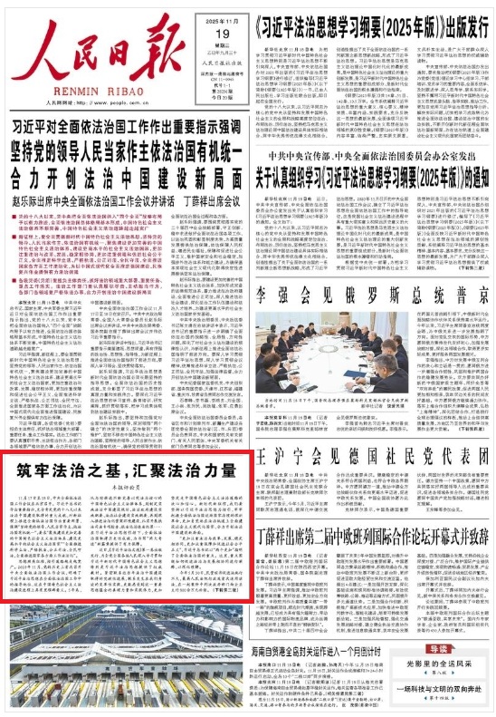思想照亮征程,指引道路越走越寬廣。2020年11月,黨的歷史上首次召開中央全面依法治國工作會議,明確了習近平法治思想在全面依法治國工作中的指導地位,這在中國特色社會主義法治建設進程上具有里程碑意義。5年來,從與時俱進不斷完善以憲法為核心的中國特色社會主義法律體系,到制定實施法治中國建設規劃、法治政府建設實施綱要、法治社會建設實施綱要,再到深入推進法治化營商環境建設、扎實開展執法司法專項檢查、依法懲治違法犯罪……在習近平法治思想引領下,全面依法治國取得歷史性成就,為書寫“兩大奇跡”新篇章提供了有力保障。
