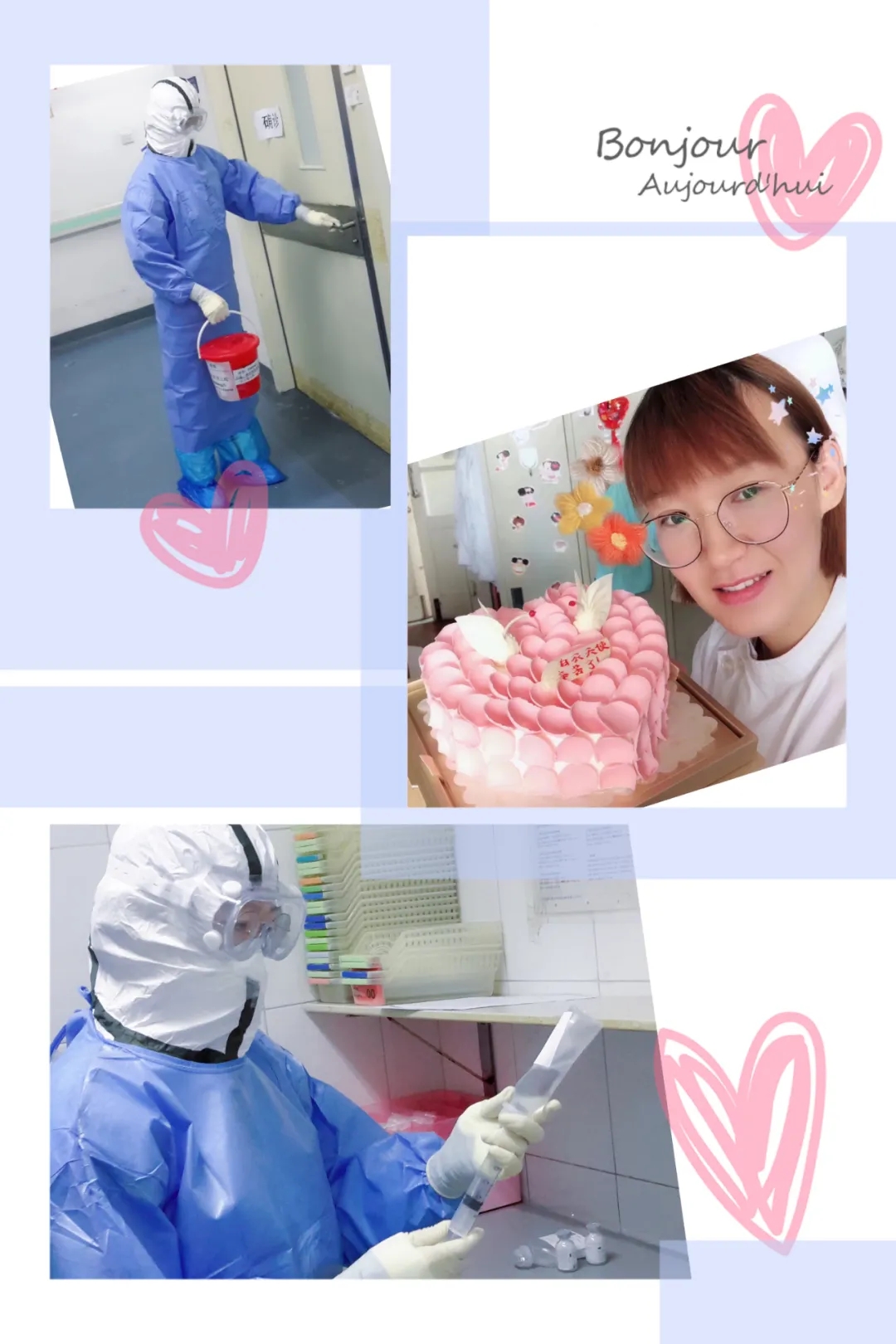 在隔離病房,需要身穿防護服,隔離衣,兩層手套,所以摸血管,扎針,抽血這種平常很簡單的操作,都變得困難起來。白雪說:“患者已經在承受巨大的身心壓力,不能再讓他們因為扎針失敗而感到痛苦”。回到休息室,她帶著雙層手套用自己的手臂去感受和模擬練習,力求能減少患者的疼痛。看到患者焦慮緊張的心情,她會上前表示安慰,帶他們做廣播操鍛煉身體,緩解患者的壓力,增強他們戰勝病魔的信心。
