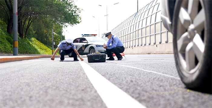 張雷從這一點入手,借鑒測繪攝影技術,將傳統直線型標尺改良為平行四邊形的標尺,在現場勘查過程中,只需把標尺擺在痕跡附近,用相機進行拍攝,將照片上傳到其研發的“道路交通事故快速處置系統”內,系統可自動生成所需的勘驗要素,從而有效縮減現場勘查的時間。