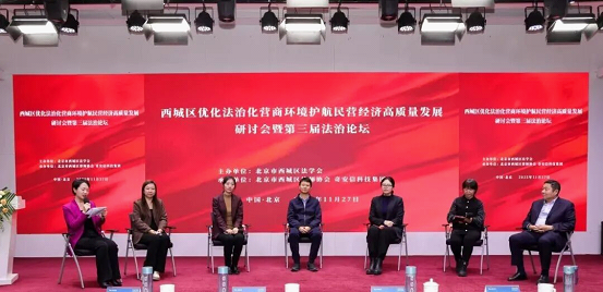 11月27日,北京市西城區(qū)優(yōu)化法治化營商環(huán)境護航民營經濟高質量發(fā)展研討會暨第三屆法治論壇舉行。本次論壇聚焦“優(yōu)化法治化營商環(huán)境護航民營經濟高質量發(fā)展”,由西城區(qū)法學會主辦、區(qū)律師協會承辦。中國法學會副秘書長、《民主與法制》社黨委書記、社長尹寶虎,北京市法學會黨組成員、專職副會長兼秘書長雷建權,西城區(qū)委常委、區(qū)委政法委書記、區(qū)法學會會長高云飛,副區(qū)長邴浩出席。