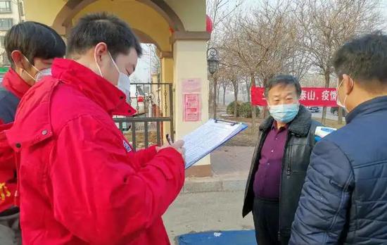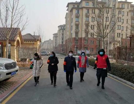 3月5日清晨,武清區玉湖庭苑小區內,戴著紅袖標的趙國欣和幾名社區志愿者像往常一樣進行疫情防控檢查。