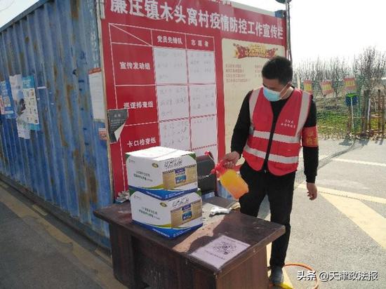 清晨6點,張洪亮已經早早來到了木頭窩村的卡點,看了一下夜間人員進村登記表,替換下值班人員后,他開始收拾臨時檢查站的衛生,并將消毒噴桶的水蓄滿。