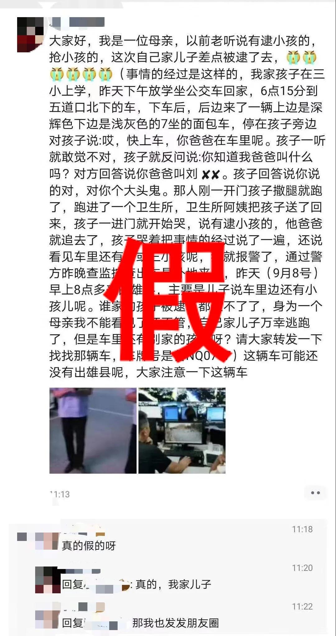 今日,河北省保定市雄縣公安局發布警情通報稱,在微信朋友圈、微信群等網絡途徑傳播的關于“外地人到雄縣拐賣小孩”的信息不屬實。