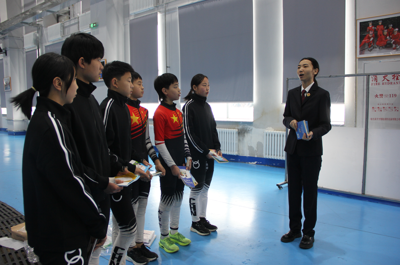 短道速滑訓練館的冰面上,冰刀劃過的脆響里混著法治課堂的笑聲,未檢檢察官對著體育學子,拆解“訓練受傷誰擔責”的法律難題。