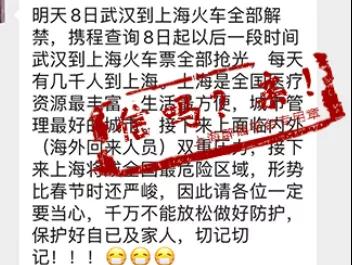 4月8日零時起,武漢解除離漢離鄂通道管制措施,有序恢復對外交通。解封意味著最艱難的時刻已經過去,就在輿論一片為武漢“重啟”高興之際,一則關于武漢解封后會給上海帶來什么影響的傳言在網上廣泛流傳,且短短一天之內,這則傳言竟然翻了3個版本。