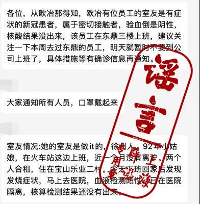7日,上海市民的朋友圈里有一則傳言稱,8月6日,居住在寶山月浦的周女士發高燒,去醫院進行血液檢測,結果為陽性,已在醫院隔離,等待核酸檢測的結果。與周女士共同租住的徐某,昨晚已接受血液檢測,檢測結果為陰性,目前在醫院隔離,并將于今天做核酸檢測。
