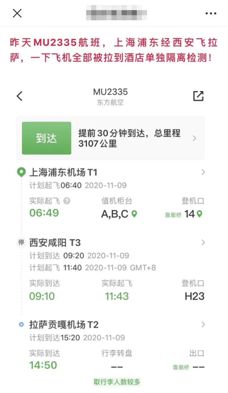 《炸鍋!上海飛拉薩航班全機隔離!》10日,某自媒體發布的一篇文章在上海人的朋友圈和微信群里刷屏了,文中提到11月9日,MU2335航班從上海浦東機場起飛,途經西安咸陽機場到達拉薩貢嘎機場后,一下飛機全部(人員)被拉到酒店隔離。