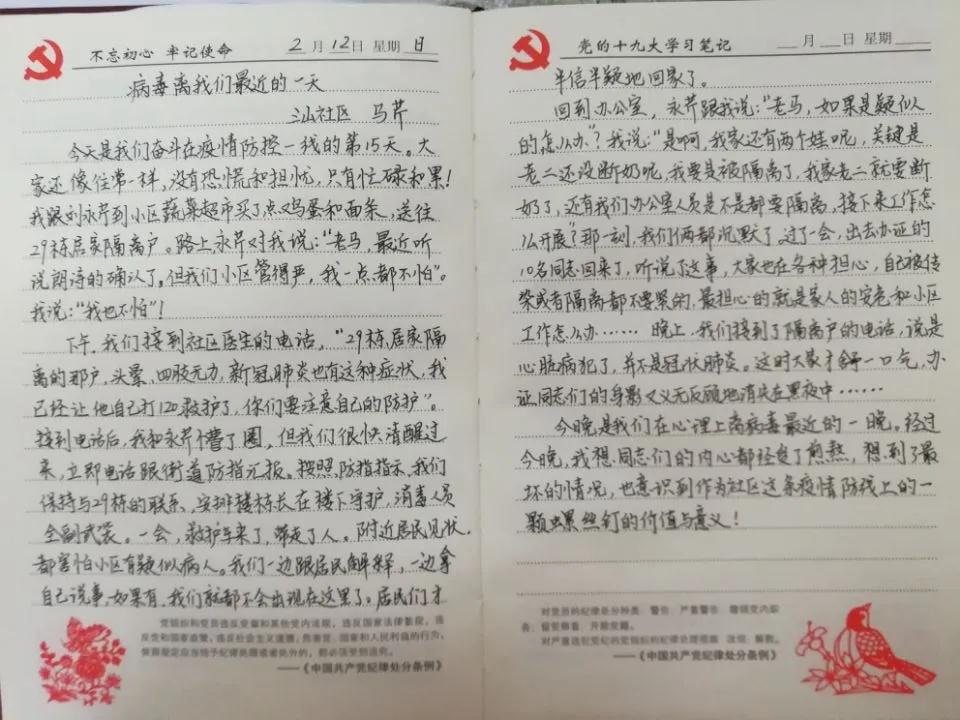 板橋街道三山社區(qū)的網(wǎng)格員馬芹是一名年輕的二孩媽媽,小的孩子還在哺乳期。2020年2月12日,她在《防“疫”日記》中這樣寫道:“今天是我們奮斗在疫情防控一線的第15天,也是病毒離我們最近的一天。”