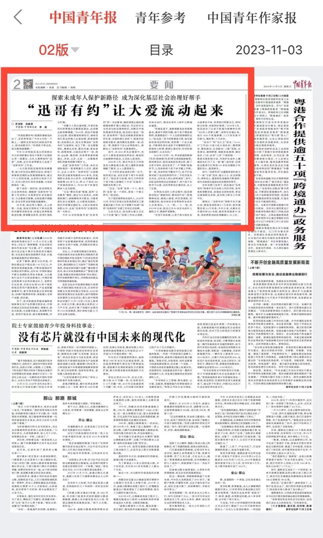 “治當下”和“長久立”結合,“6+6+X”工作法(六進六送X場活動),警情聯動、警校聯動、社會聯動“三聯”機制,分類登記、建檔管理,根據具體案例,確定急診、門診、會診“三診”干預機制……一套套長效機制方法,帶來的是精準介入,為保護未成年人健康成長打開了又一扇“窗”。到目前,迅哥和志愿者們已經幫助100余名問題青少年重拾信心、重獲新生。