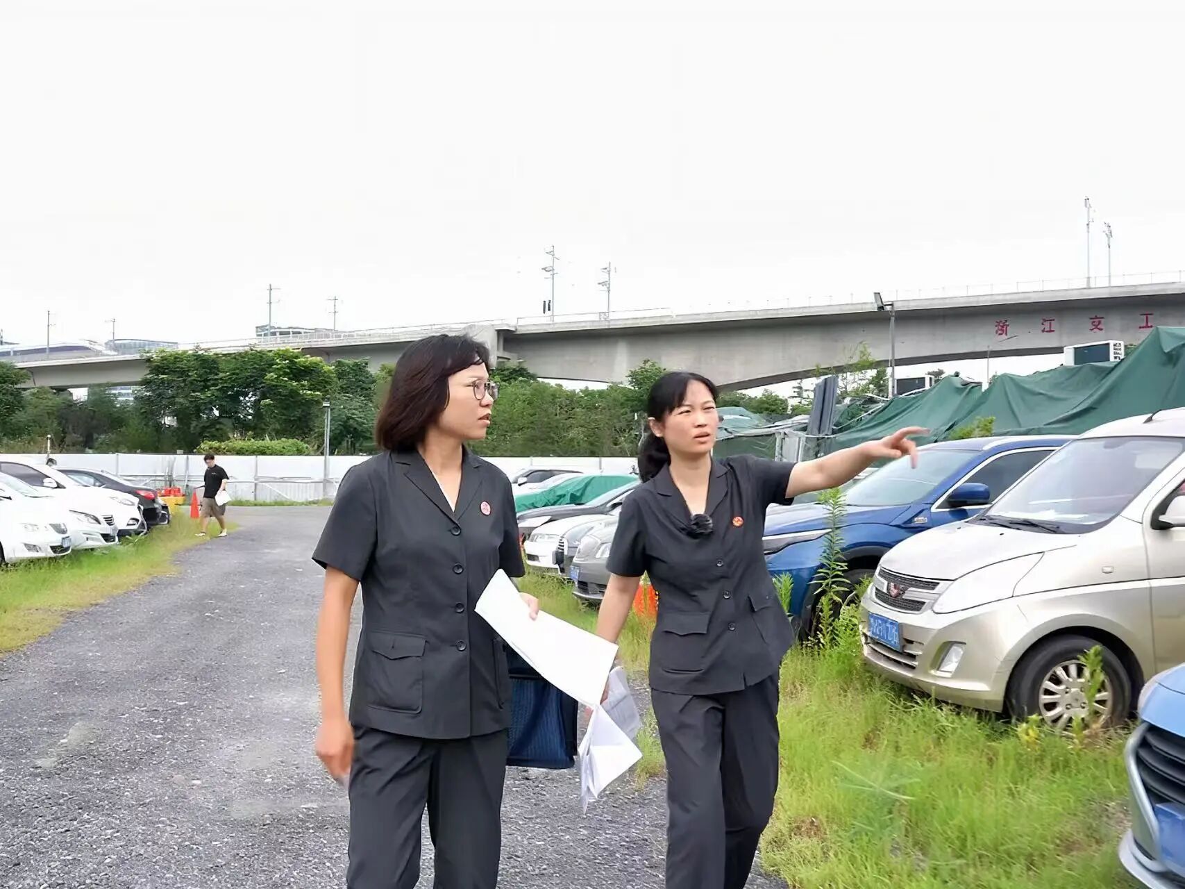 西湖法院執行干警對被執行人名下車輛采取查封措施