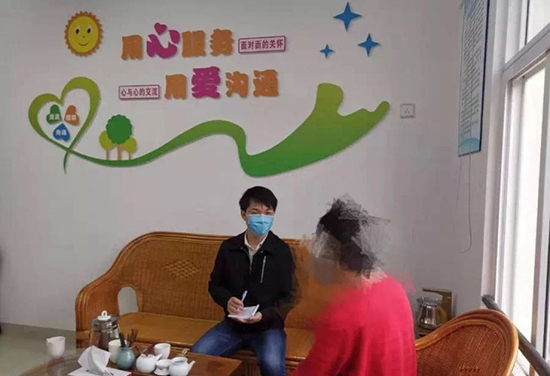 網(wǎng)格員對(duì)群眾進(jìn)行心理壓力疏導(dǎo)