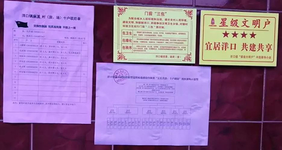 洋口鎮(zhèn)麻溪村張貼的十戶聯(lián)防表