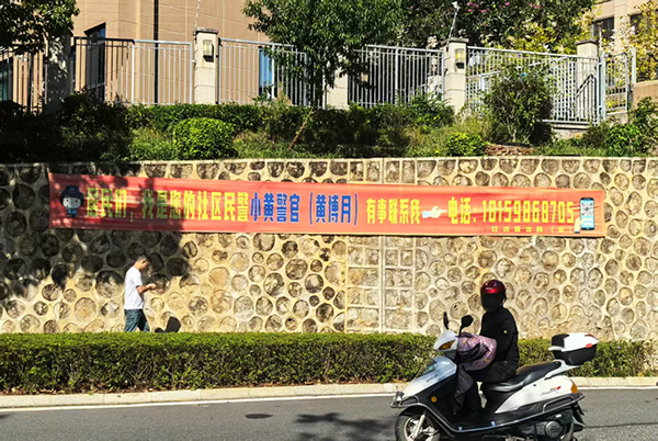 “以前警民聯(lián)系卡貼在電梯邊,沒什么事兒不會特別去看,現(xiàn)在出門走兩步,路邊的橫幅字大醒目,想不注意都難,號碼我早就存下來啦。”對紫金山社區(qū)居民王阿姨來說,橫幅最讓她滿意的是“抬頭就能看見”。