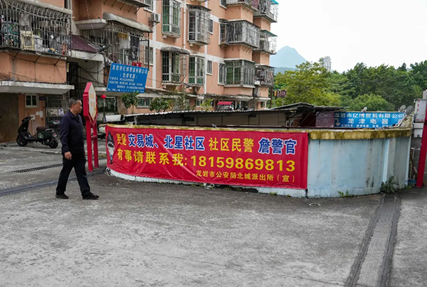 漫步福建龍巖城區(qū)的各社區(qū),路口街角、居民樓邊,常能看到一抹抹亮眼的紅色橫幅——“居民們,我是您的社區(qū)民警XXX,有事聯(lián)系我→電話:xxxxxxxxxxx”。