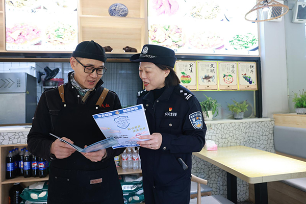 夏茂派出所民警走進小吃店,向小吃業主宣傳反詐知識