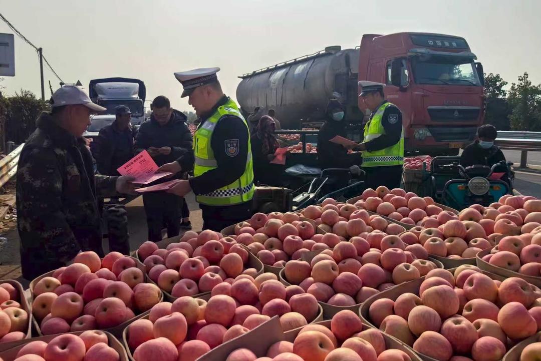 針對果收農忙期間的車流高峰,煙臺交警科學調整勤務安排,加密清晨、傍晚時段的巡邏頻次與密度。在主要農機通行路線、交叉路口部署警力指揮疏導,引導農機車輛安全有序通行。對全市23處主要水果批發市場及周邊路段,在人流、車流高峰時段增設警力,集中開展交通指揮疏導和違法查糾,對影響通行秩序的各類問題,做到及時發現、及時勸導、及時清理。