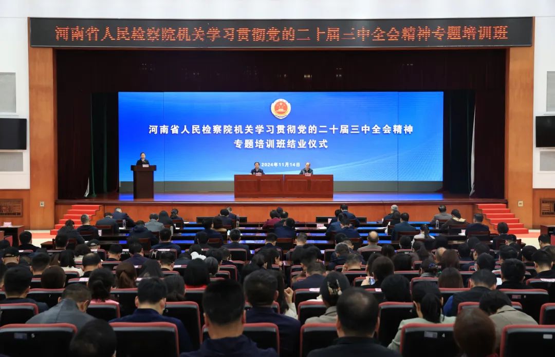 11月12日至14日,河南省人民檢察院舉辦學(xué)習(xí)貫徹黨的二十屆三中全會(huì)精神專題培訓(xùn)班。培訓(xùn)班全面準(zhǔn)確學(xué)習(xí)貫徹黨的二十屆三中全會(huì)精神,把學(xué)習(xí)貫徹全會(huì)精神與學(xué)習(xí)貫徹習(xí)近平法治思想相融通,持續(xù)深學(xué)細(xì)悟,緊扣工作實(shí)際,謀劃貫徹落實(shí)措施,確保全會(huì)精神在我省檢察機(jī)關(guān)不折不扣落地見(jiàn)效。