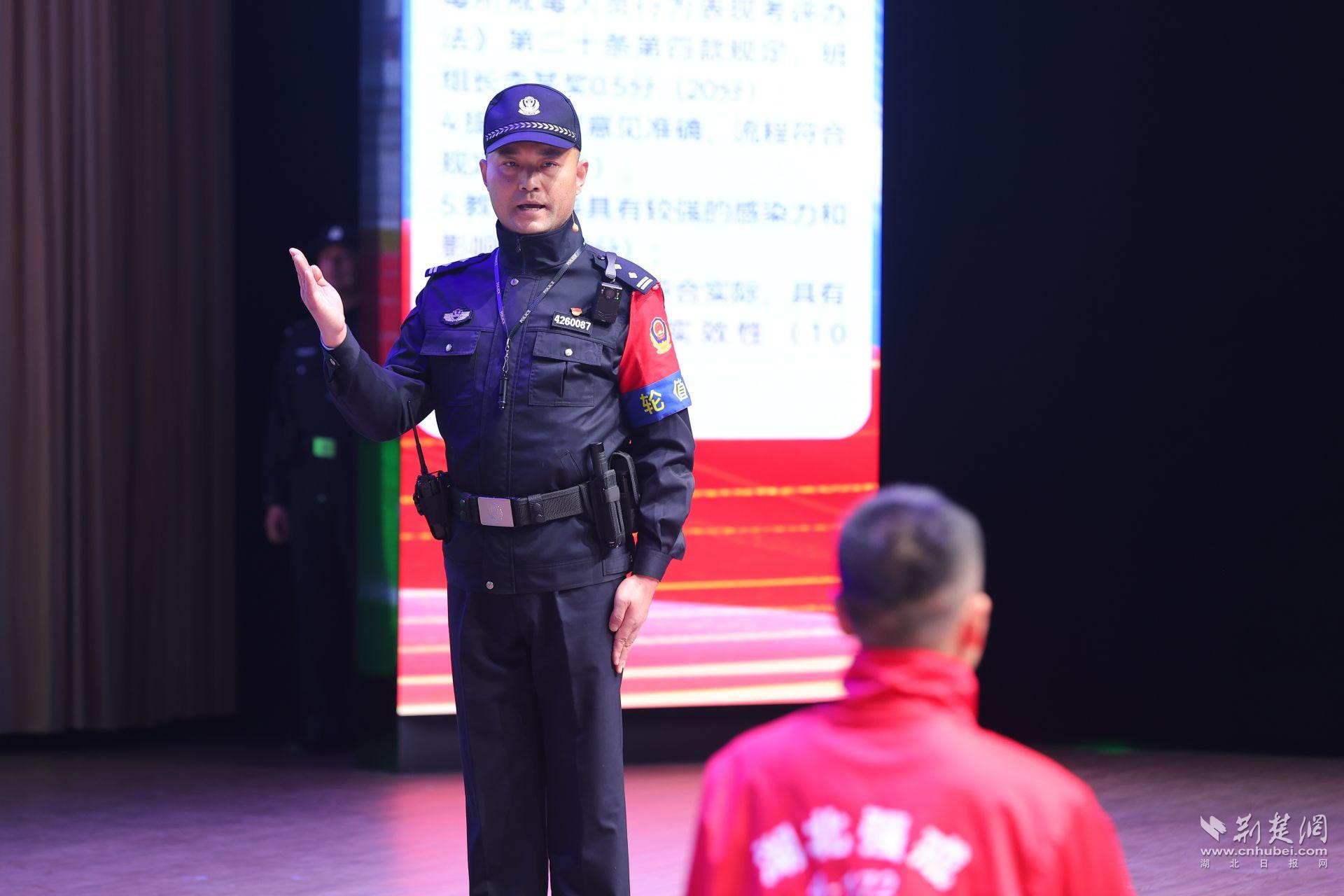 為全方位檢驗參賽民警的理論素養、實操技能與應急處置能力,決賽設置“見微知著”—民警隊前講評、“精兵強將”—執法管理理論知識競賽、“明察秋毫”—執法文書糾錯、“洞若觀火”—安全隱患視頻排查四大核心項目。