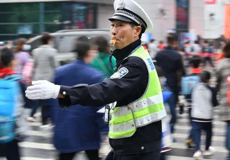 “全國最美基層民警”、常德交警直屬四大隊執(zhí)勤二中隊交警曾祥富早已提前到崗。他用由口哨聲創(chuàng)作成的“口哨交通指揮五部曲”,配合交通手勢,指揮車輛有序通過,確保師生返校期間交通安全暢通。