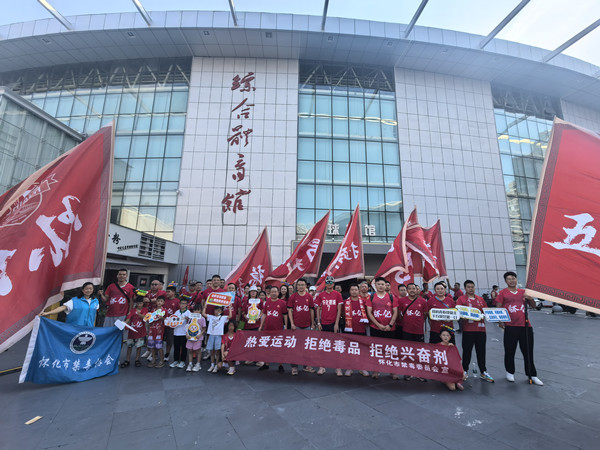 綠茵場上傳遞禁毒力量。(10月4日,懷化市禁毒專項組、市文旅廣體局、市禁毒協會緊密依托賽事平臺,在比賽現場聯合組織開展了以“熱愛運動拒絕毒品拒絕興奮劑”為主題的禁毒宣傳活動。)