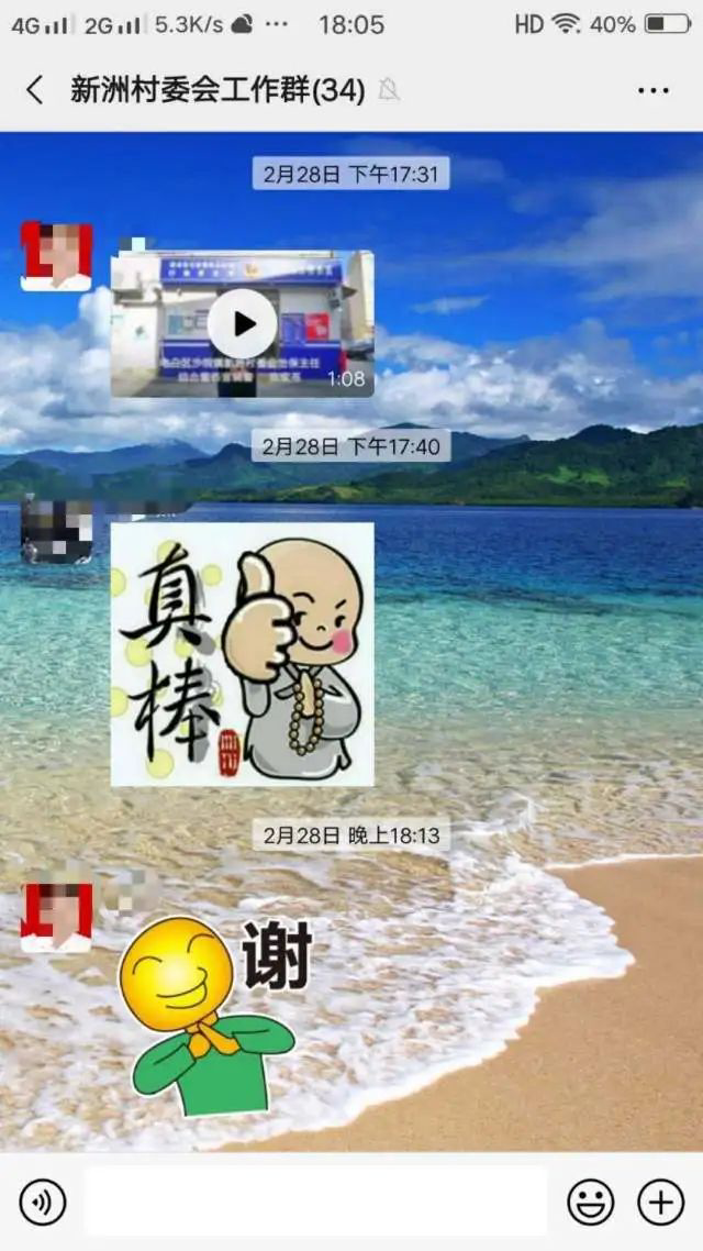 收到群視頻的其他村干部和許多村民,因為頗為好奇這位熟悉的“隔壁家大叔”在說什么而打開了視頻。他們看了視頻后紛紛回復各種點贊“表情”,對兼任綜合警務室輔警的治保主任敢于亮相自己的做法也表示“做得”(電白方言:可以、很好的意思)。