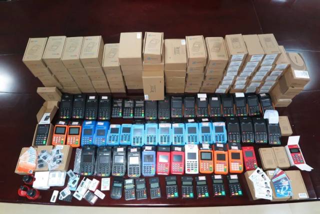 根據前期偵查,廣州市公安局經偵支隊成功對該盜刷犯罪團伙實施全鏈條打擊,并將相關信息提供給外省公安機關經偵部門,在全國發起“云端行動”實施打擊。經統計,廣州市公安局經偵支隊共抓獲涉案嫌疑人6名,現場繳獲POS機155部、銀行卡64張、U盾和物聯卡一批,查獲被側錄銀行卡信息290余條。
