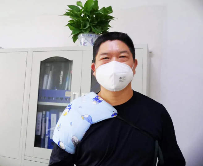 每次出發(fā)工作前,王蓉瑞都會(huì)在肩膀上墊一個(gè)藍(lán)色軟墊。這是他妻子用外孫小時(shí)候蓋的被子縫制而成的“愛心牌”護(hù)肩。有了這個(gè)護(hù)肩,肩膀就不會(huì)勒得那么疼了。王蓉瑞滿臉幸福地說:“我的工作離不開太太的絕對(duì)支持。我們每位警察的家屬在這次疫情中付出的不比我們少。有家人的支持,有街坊群眾的支持,哪還有什么‘不容易’的。”