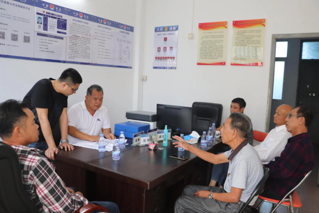汕尾市城區馬宮街道金町村“夕陽紅·老舅公”調解志愿服務隊在調解糾紛。