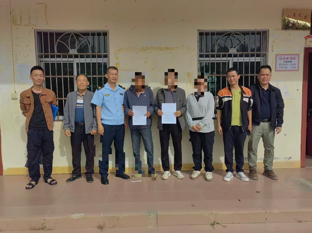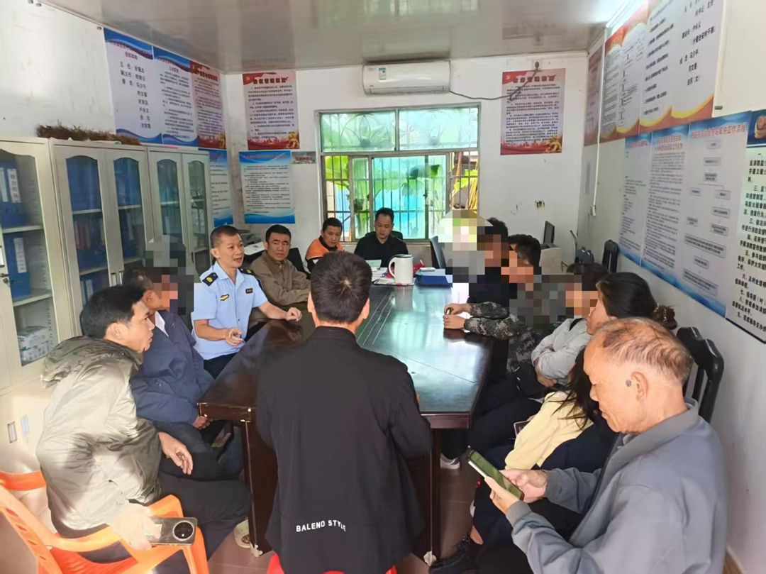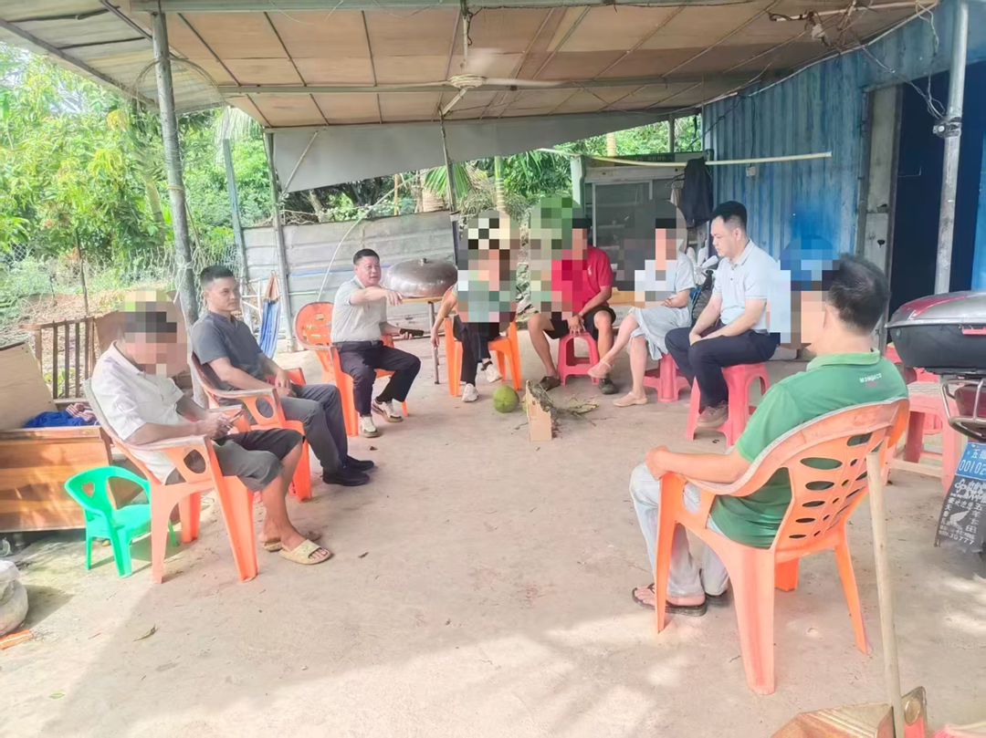 屬地鎮接到派單任務后,迅速成立由鎮干部、司法所所長、村干部、網格員組成的專項調解工作組。為摸清糾紛全貌,工作組通過“實地走訪+多方求證”的方式,先后深入檳榔園查看現場環境,走訪周邊村民、知情人員,詳細核實雙方所述情況。經過細致核查,確認了兩大關鍵事實:一是李某泉在園內種植的蔞葉確實未納入承包范圍;二是龍某所述的李某泉醉酒滋事、損壞大門等情況屬實。