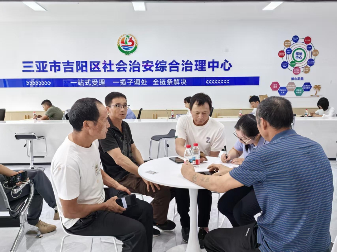 圖為三亞市吉陽(yáng)區(qū)綜治中心工作人員對(duì)矛盾雙方進(jìn)行調(diào)解。