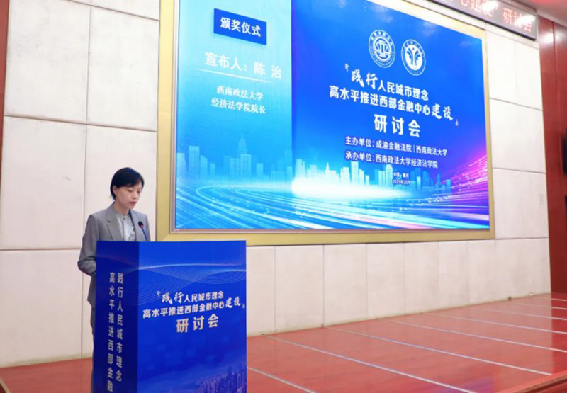 研討會上,舉行“高水平金融法治保障高質量金融發展”主題征文活動頒獎儀式,西南政法大學經濟法學院院長陳治宣讀獲獎作者名單,成渝金融法院黨組成員、副院長成春主持頒獎儀式。此次主題征文活動由成渝金融法院、西南政法大學、西南財經大學聯合舉辦,共評選出一等獎6篇,二等獎10篇,三等獎15篇,優秀獎15篇。