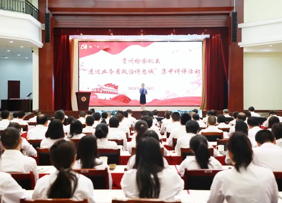 圖為2024年6月24日,貴州省檢察院舉辦全省檢察機關“透過業務看政治講忠誠”集中講評活動。