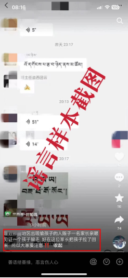 另一段視頻配音:“各位,要注意一下自家的小孩,100多號人已從內地進藏,是專門來拐賣小孩、盜取貴重物品的,目前已經到甘孜、德格地段,我只是分享到此群,讓大家提高防范意識”。