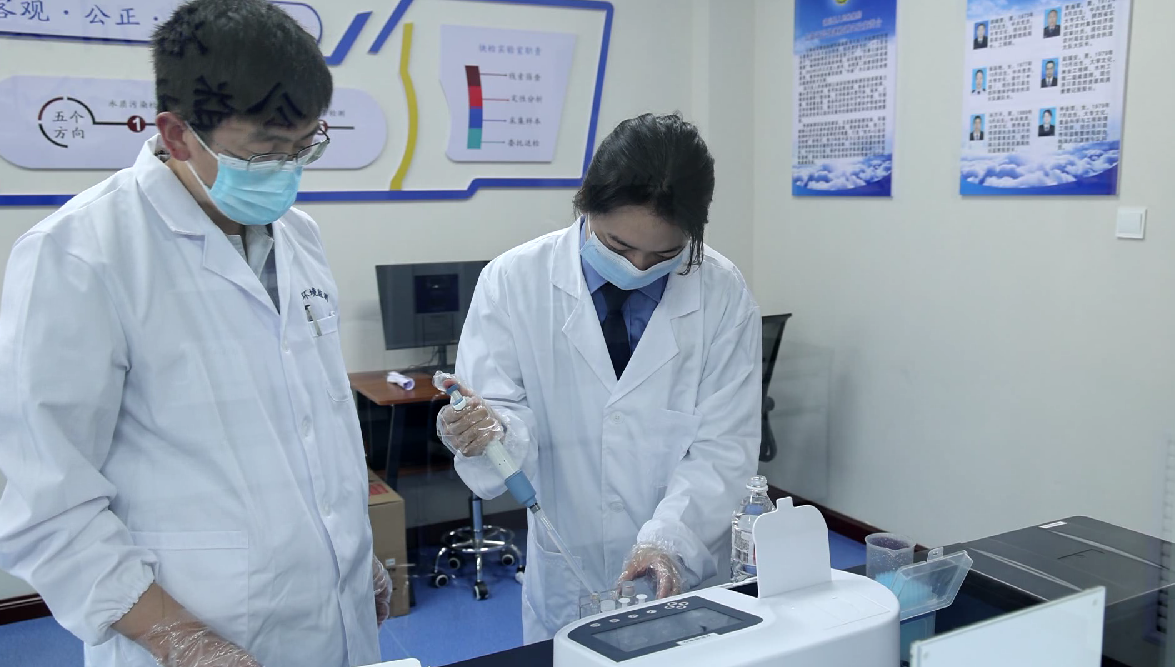圖為檢察干警與特邀檢察官共同檢測水樣