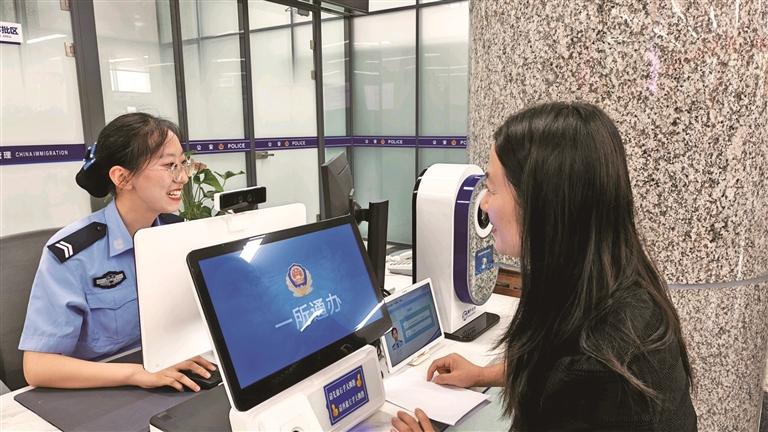 八月五日,在西安市政務服務中心,西安市公安局工作人員為市民辦理業務(資料照片)。