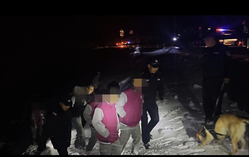 救援車隊沿合和路向太子山頂行進,抵達半山腰時,天空已徹底暗透,鵝毛大雪漫天紛飛,路面已有積雪,并有濃霧彌漫,能見度不足十米,車輛在顛簸中繼續向山頂移動。到達山頂后,隨著現場指揮一聲令下,“大家要爭分奪秒,按照幾個小路口,分區域開展搜索,同時要注意腳下安全,務必擴大搜索范圍!”救援隊伍根據現場情況,立即分三路展開拉網式排查,沿著濕滑的路面,民輔警們深一腳淺一腳的足跡在雪地里延伸,民警的呼喊聲被狂風吞噬,只能靠手電筒的光柱在茫茫雪野中艱難探尋。每遇到一處牧民定居點,民警便立刻上前詢問牧民。“老鄉!麻煩問一下,您今天見過幾個十幾歲的少年進山嗎?穿的運動服,大概這么高!”民警扒開窩棚門上的積雪,凍得發紫的臉上滿是急切。牧民們聽聞是找迷路的孩子,紛紛裹緊棉衣快速回憶,有的指著西邊山梁回憶:“后晌見過幾個娃往那邊去了,當時還以為是游客!”有的趕緊提醒:“西邊有處坡地下了雪,你們可得當心!”每一句指引、每一份暖意,都成了風雪中前行的力量。無人機攜帶著夜視攝像頭升空,卻在強風干擾下多次偏離航線;警犬頂著風雪嗅探蹤跡,鼻尖很快被凍得通紅;后方指揮室則緊盯著沿途視頻監控,試圖捕捉少年們的身影。