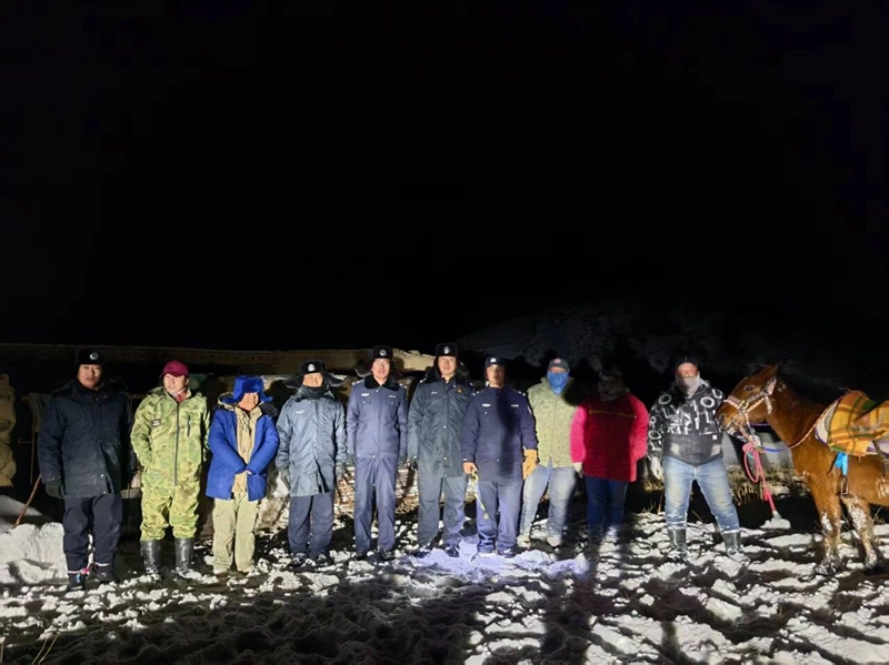 接警后,黨城派出所迅速組織警力,聯合村委會工作人員及報警人親屬,共14人攜帶棉衣、食品、藥品等必要物資,立即驅車前往浩布拉村三個泉子事發地。救援車隊在惡劣天氣中行進近50公里,沿途積雪深厚,車轍旋即被風雪掩埋。