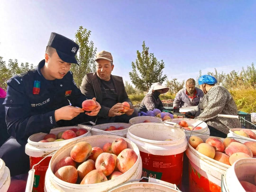 秋意漫過新疆生產建設兵團第三師葉城二牧場的田野與山崗,在掛滿枝頭的蘋果園里,在海拔3800米的雪山腳下,喀什墾區公安局杏花派出所的民警輔警忙碌的身影,共同繪就了一幅警民同心的溫暖畫卷。