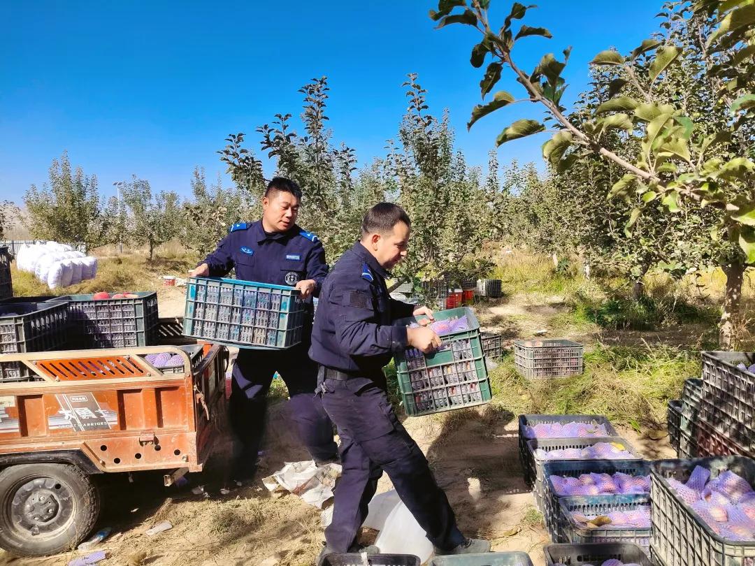 果園里,果香四溢。民警吳雷挽起衣袖,與果農們一同穿梭在果樹間。只見他手法嫻熟,單手一托一轉,紅透的蘋果便落入筐中;輔警劉振國、阿布力克木則在旁彎腰搬箱、仔細分裝,汗水早已浸濕額前的碎發。“有你們幫忙,我這近10畝果園,上萬斤的蘋果總算能趕在霜凍前收完!”果農克力木語氣里滿是感激。