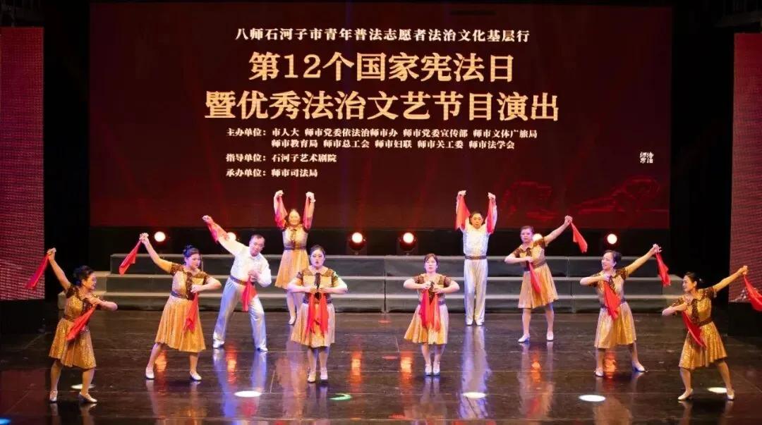 12月3日,第八師石河子市黨委全面依法治師市委員會辦公室牽頭市人大常委會、師市黨委宣傳部、師市文體廣旅局、師市總工會、師市法學會等單位,開展第十二個“國家憲法日”暨法治文藝優秀節目演出,用群眾喜聞樂見的形式弘揚憲法精神,傳播法治理念。