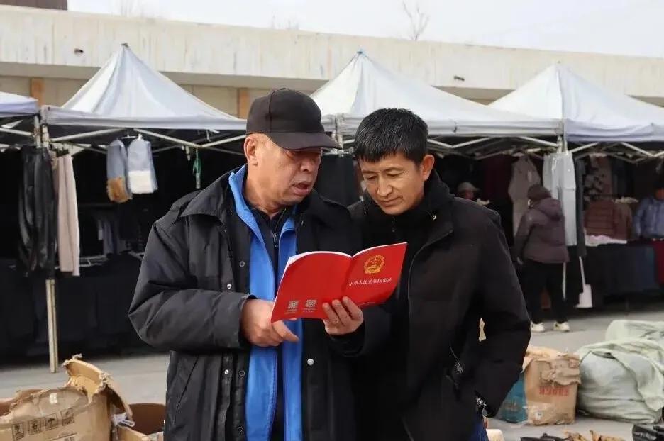 為弘揚憲法精神,筑牢團場居民的法治信仰,11月28日,第五師九十一團司法所緊抓團場集市人流密集的有利時機,將一場“帶露珠、冒熱氣”的憲法宣傳教育活動直接送到群眾身邊。他們以“面對面講解、心貼心交流”的方式,讓抽象的法律條文化作尋常煙火里的行為準則,將法治的種子撒進百姓心田。
