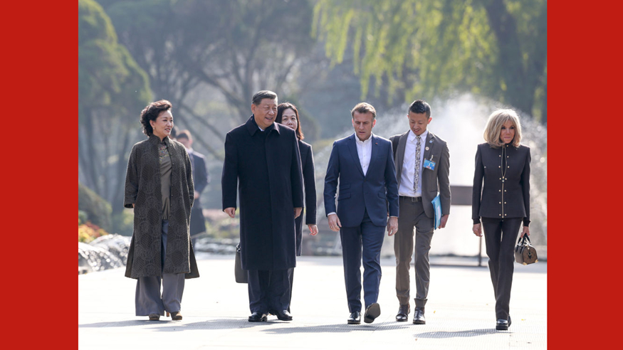 習近平同法國總統馬克龍在成都進行友好交流